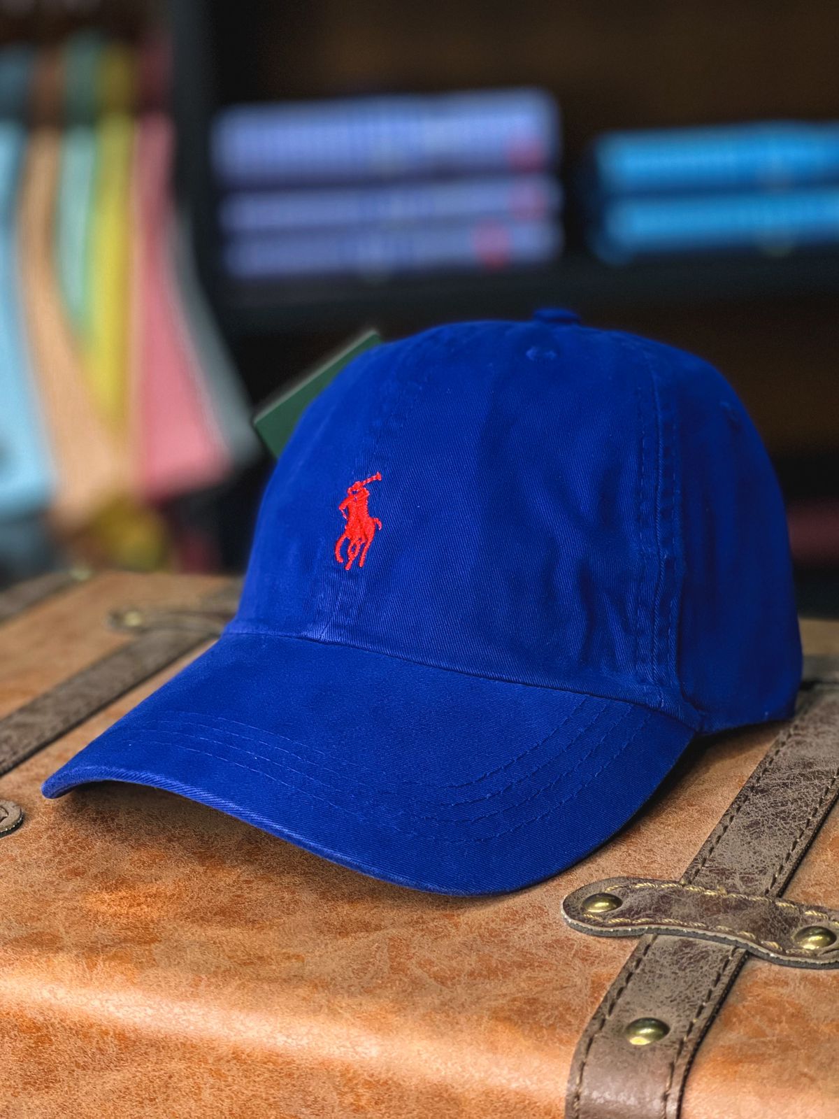 Boné Ralph Lauren Classic Azul Bic Pony Vermelho