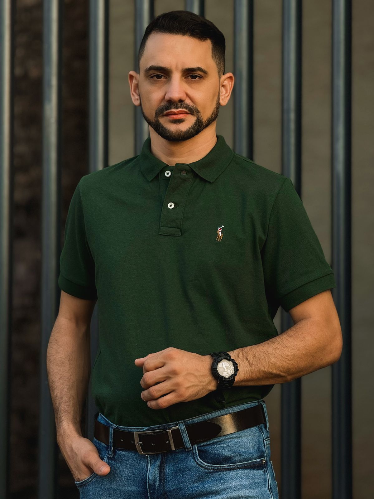 Parte posterior mais alongada, característica tradicional das polos da Ralph Lauren.