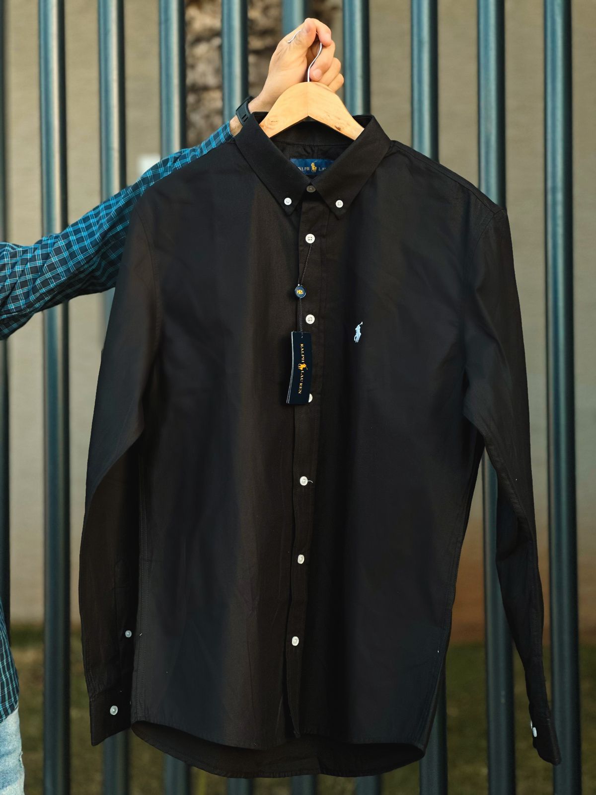 Camisa Ralph Lauren Manga Longa Oxford Preta Pony Branco