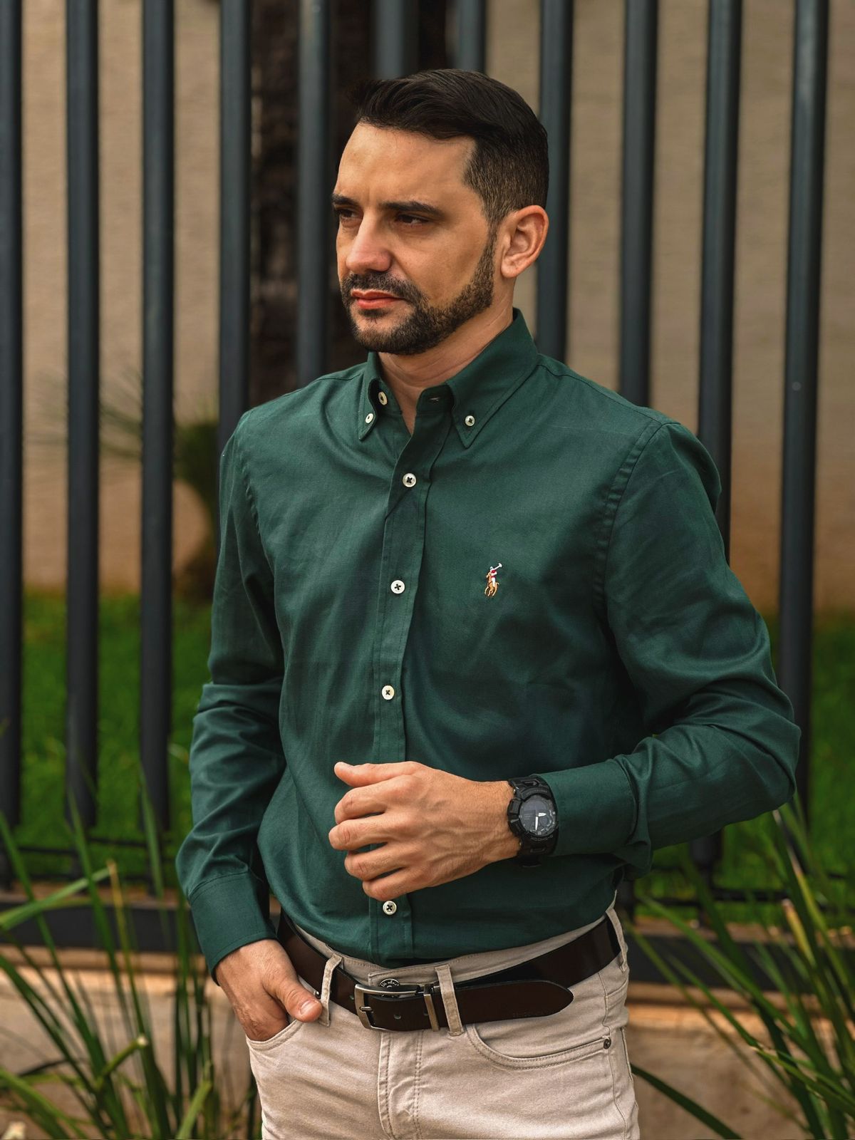 Camisa Ralph Lauren Manga Longa Oxford Verde Musgo Pony Colorido