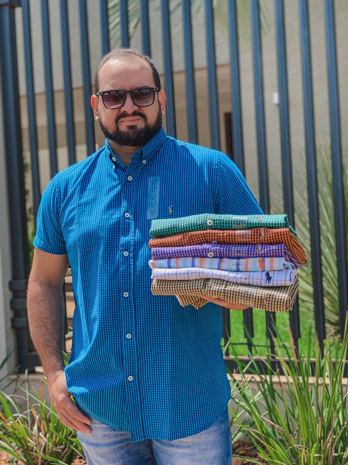 Camisa Ralph Lauren Masculina Custom Fit Xadrez Azul Modelagem Custom Fit.