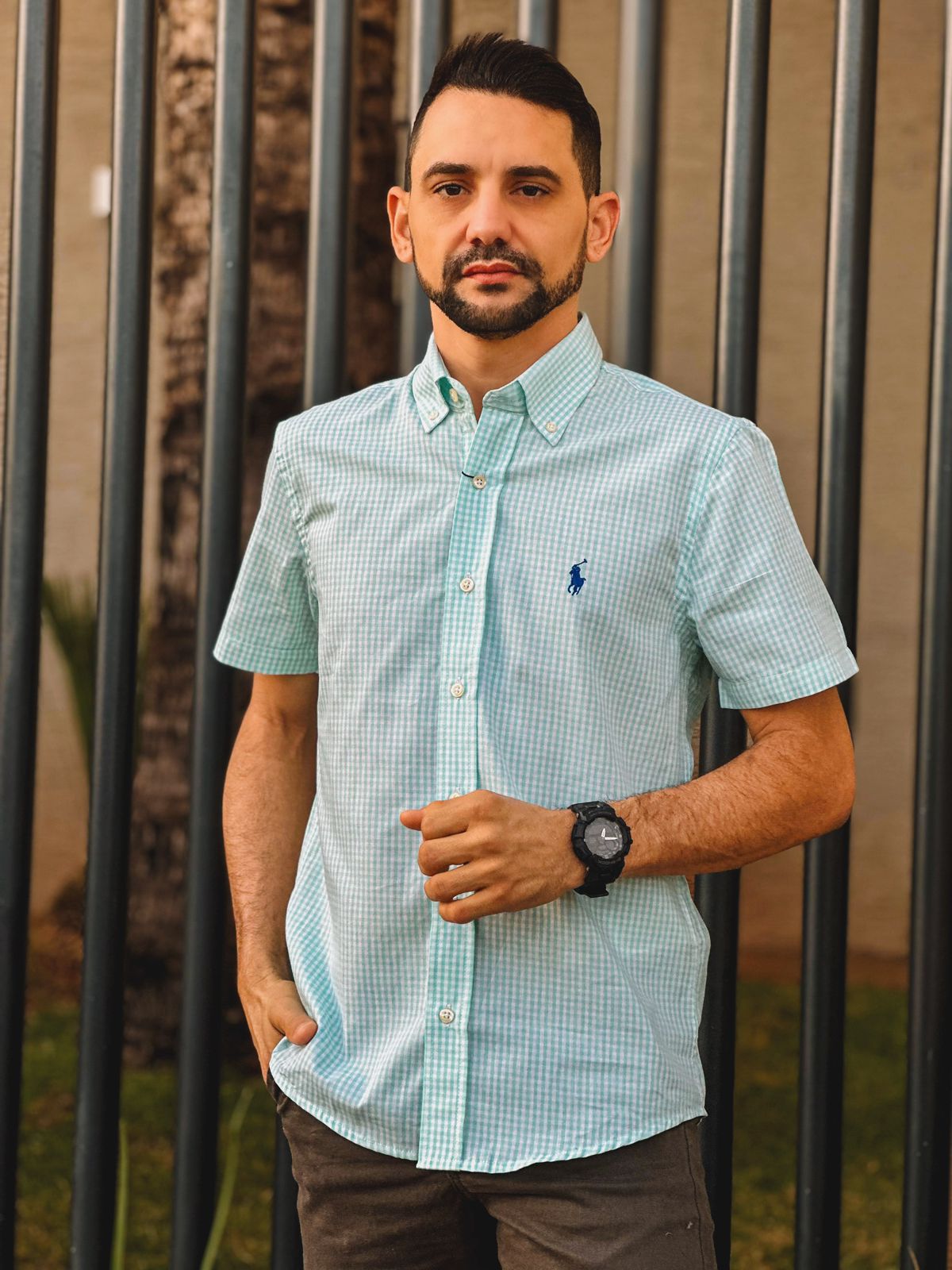 Camisa Polo Ralph Lauren masculina manga curta na cor Verde Água.