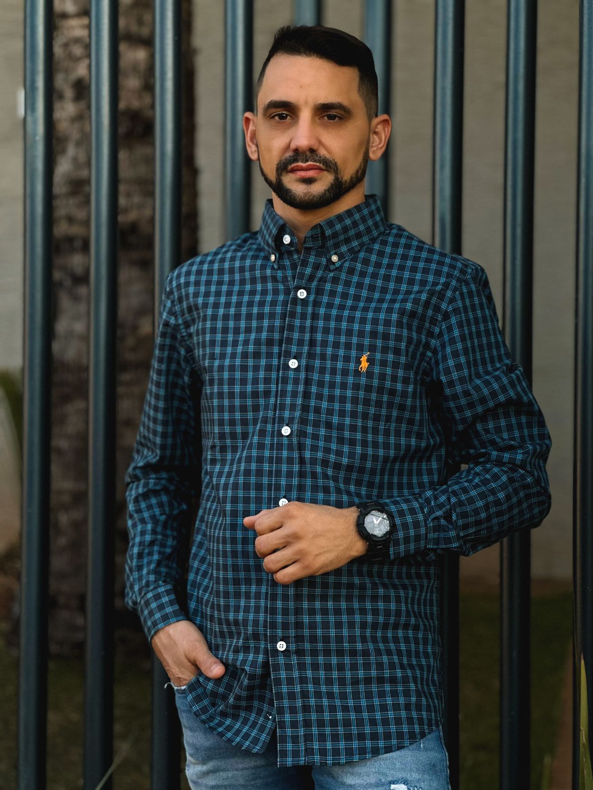Camisa Ralph Lauren Masculina Xadrez Espaçado Preta Modelagem Custom Fit.