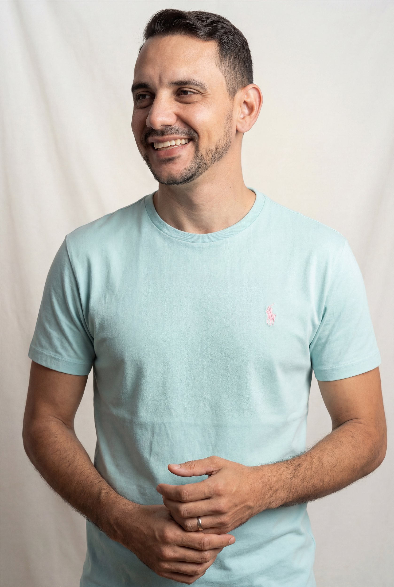 Camiseta Ralph Lauren masculina na cor azul bebê.