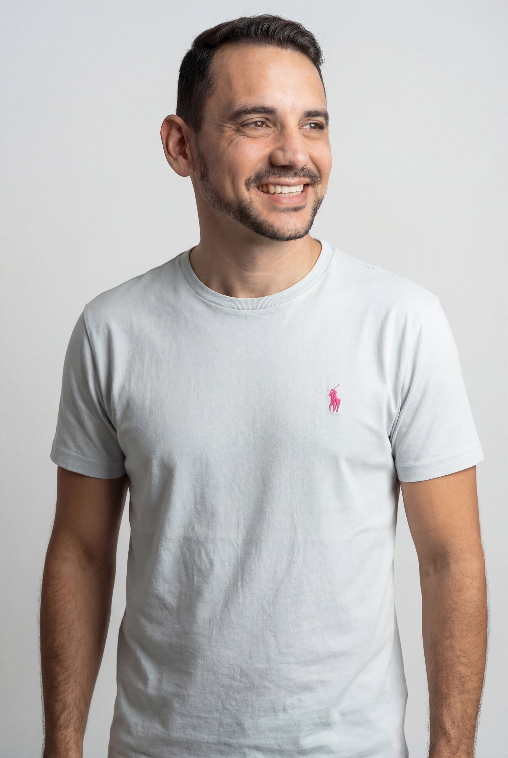 Camiseta Ralph Lauren masculina na cor azul bebê.